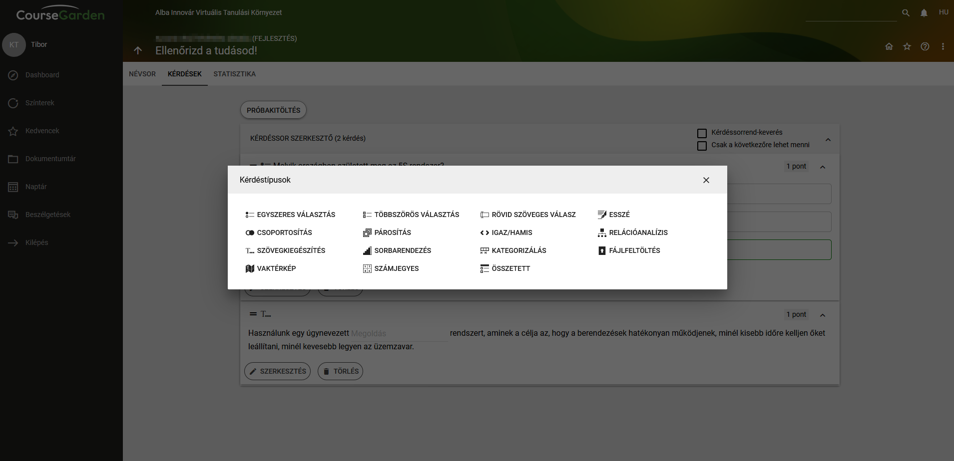 - -tudásellenőrző elemek elkészítése