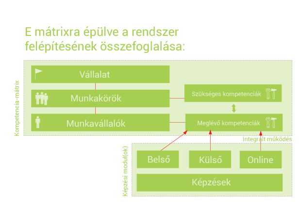 - amely a kompetenciakezelést és az ezekre épülő képzések lebonyolítását segíti, de az adott partner igényei mentén újabb funkciókkal bővíthető.